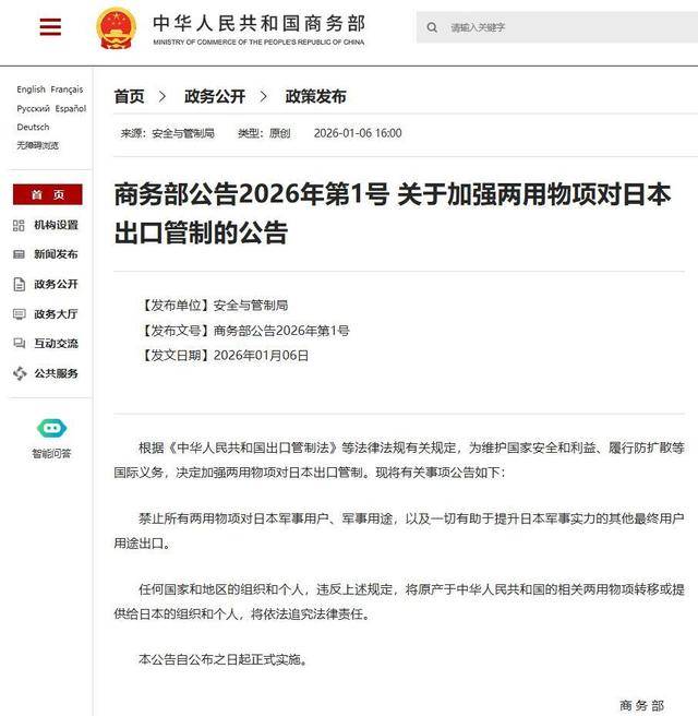 后果来得比想象中更快,也更痛。等不到报歉的中国终究正在除夕事后启动了两用物项出口管制,精准地掐住了日本制制业的咽喉。